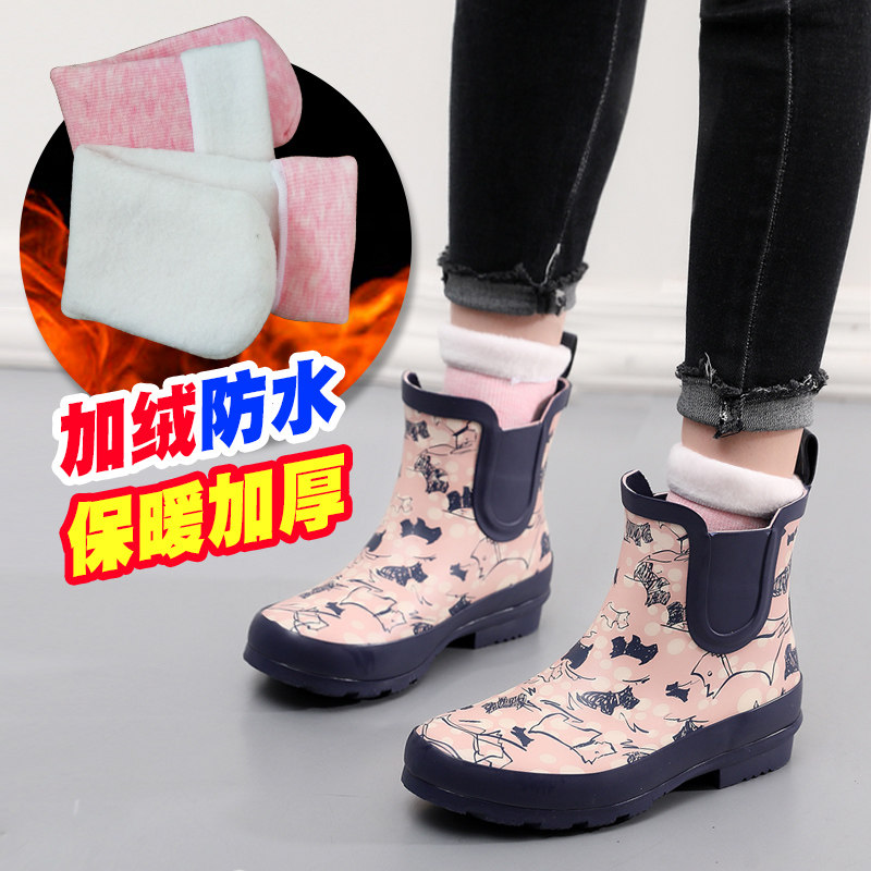 Rain boots women's fashion model outside wearing pretty rubber rain boots low top large size 41 cute 2021 funky cotton waterproof shoes autumn