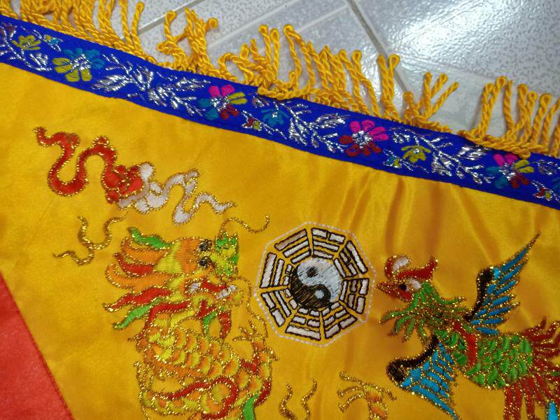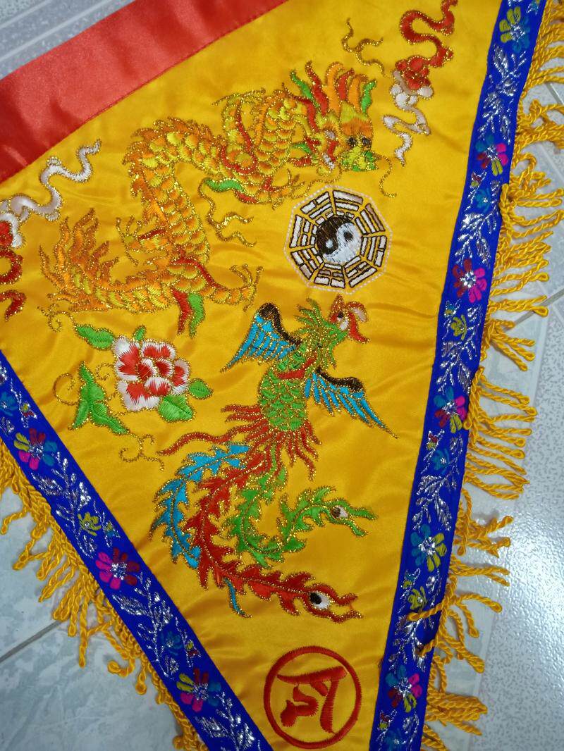Double-sided embroidered 40 cm yellow Longfeng ordered flags of five square flags of the flag five-square-flag attraction to be flown into the fragrant flag festive supplies