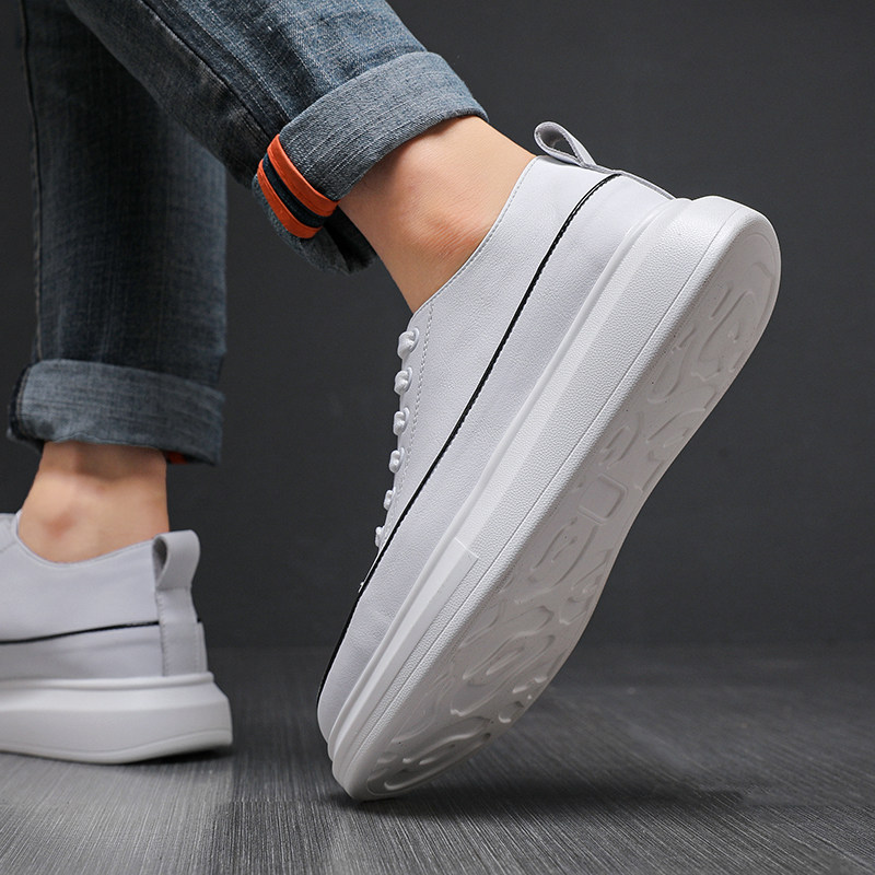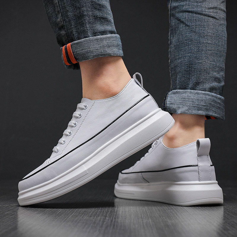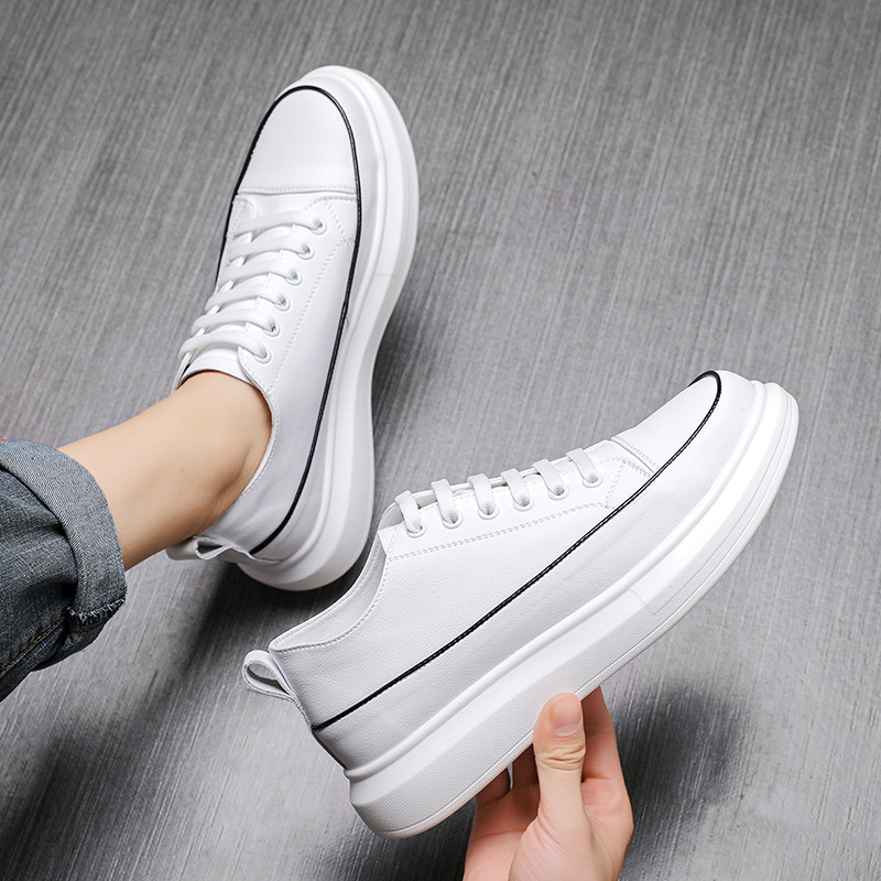 Tide brand white shoes men's leather 2021 new thick-soled heightened platform shoes British trend all-match breathable casual shoes