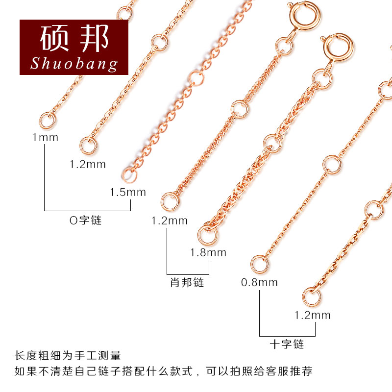 Chopin thin chain (rose gold) about 1 mm wide O-shaped chain (rose gold) about 1.2 mm wide O-shaped chain (K white gold) about 1 mm wide Chopin thick chain (K white gold) about 1.8 mm wide