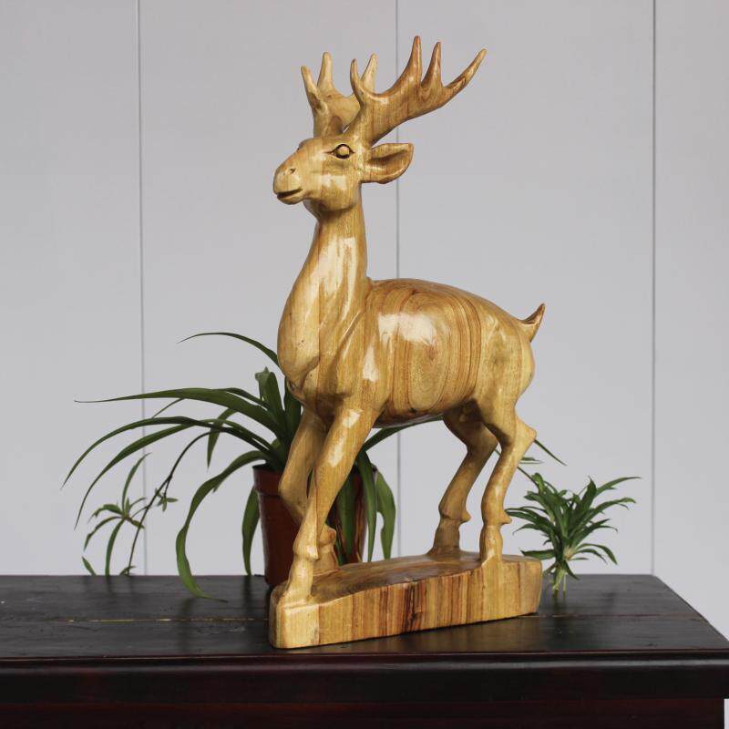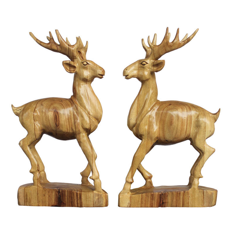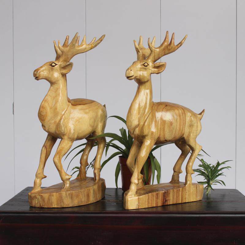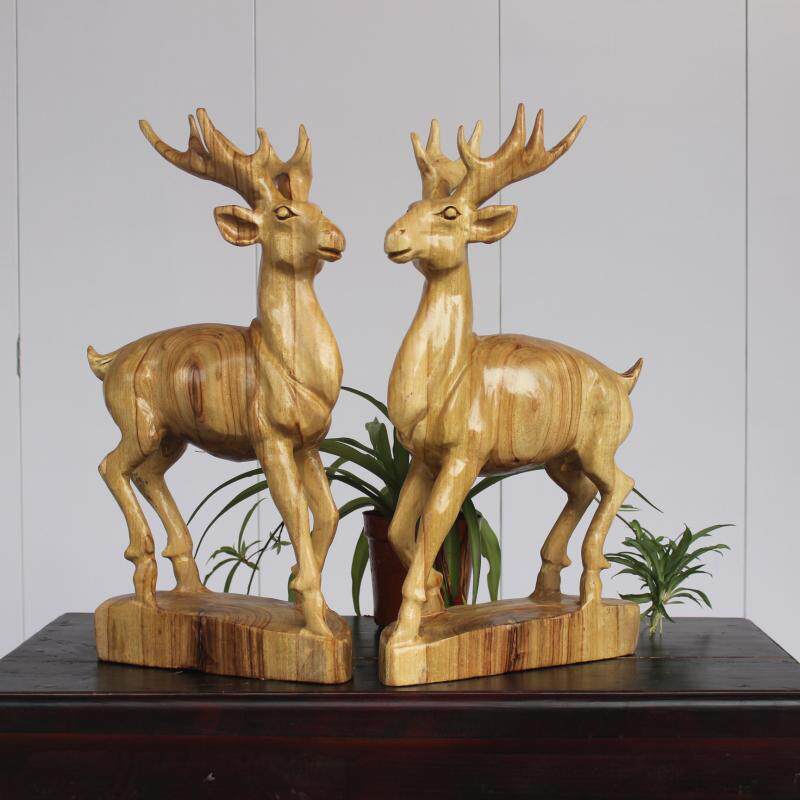 Fragrant Camphor Wood Deer Root Carved Living Room Swing Piece Adornment Solid Wood Engraving Plum Blossom Deer Animal Craft Gift Hem Accessories Gift collection