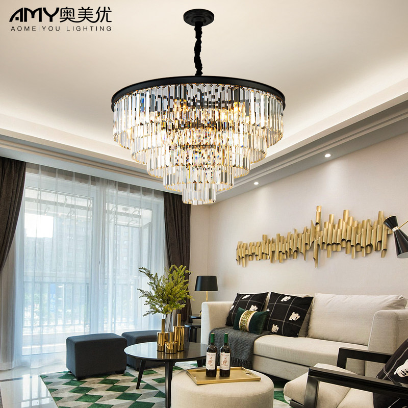 Golden Round Ceiling Model 80cm-Three-color Light Same Wall Lamp (Gold) Package Black Rectangular Pendant Model 80CM*35CM-Three-color Light Golden Four-Room Two-hall Package Black