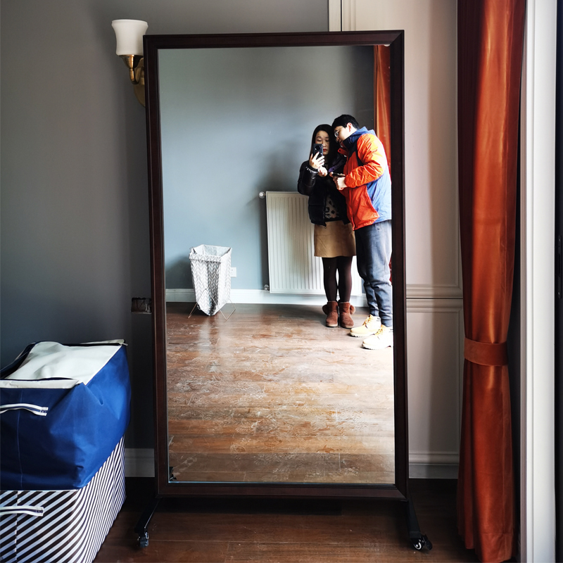 Solid wood home dance mirror full body floor with wheels movable dance mirror gym yoga practice room rehearsal