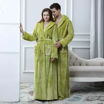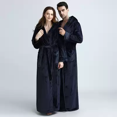 High-end dressing gown men super long thick coral velvet flannel large size robe bathrobe couple pajamas home clothes