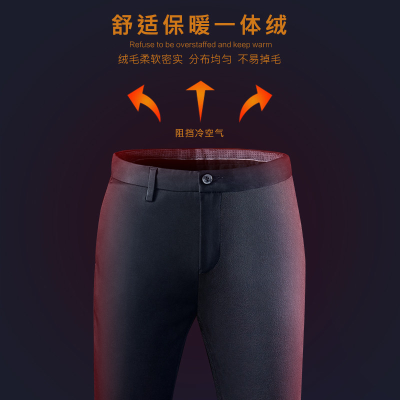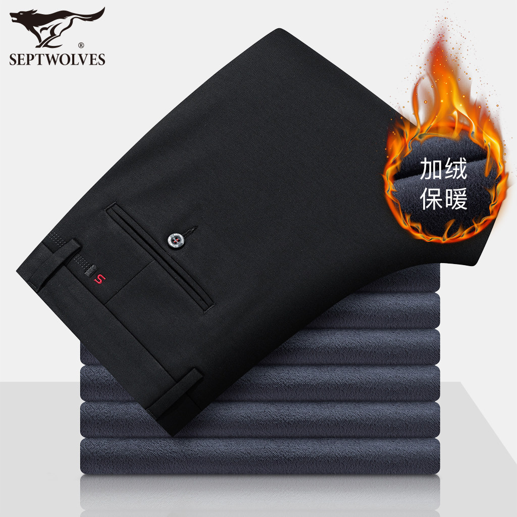 Septwolves casual pants autumn and winter new trend men's plus velvet straight tube thickening loose warm long pants men's