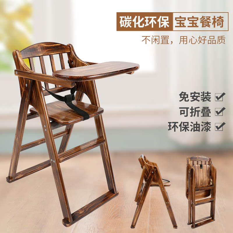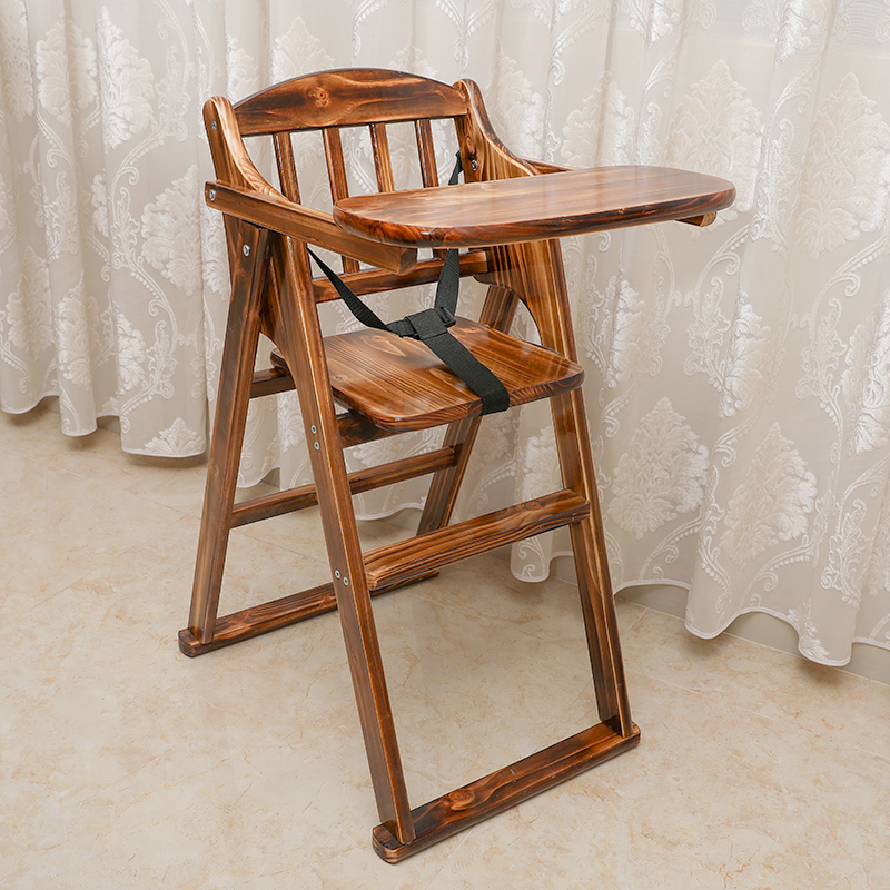 Baby Dining Chair Children's Dining Table Chair Carbonized Children's Dining Chair Folding BB Stool Dining Seat Solid Wood Dining Chair