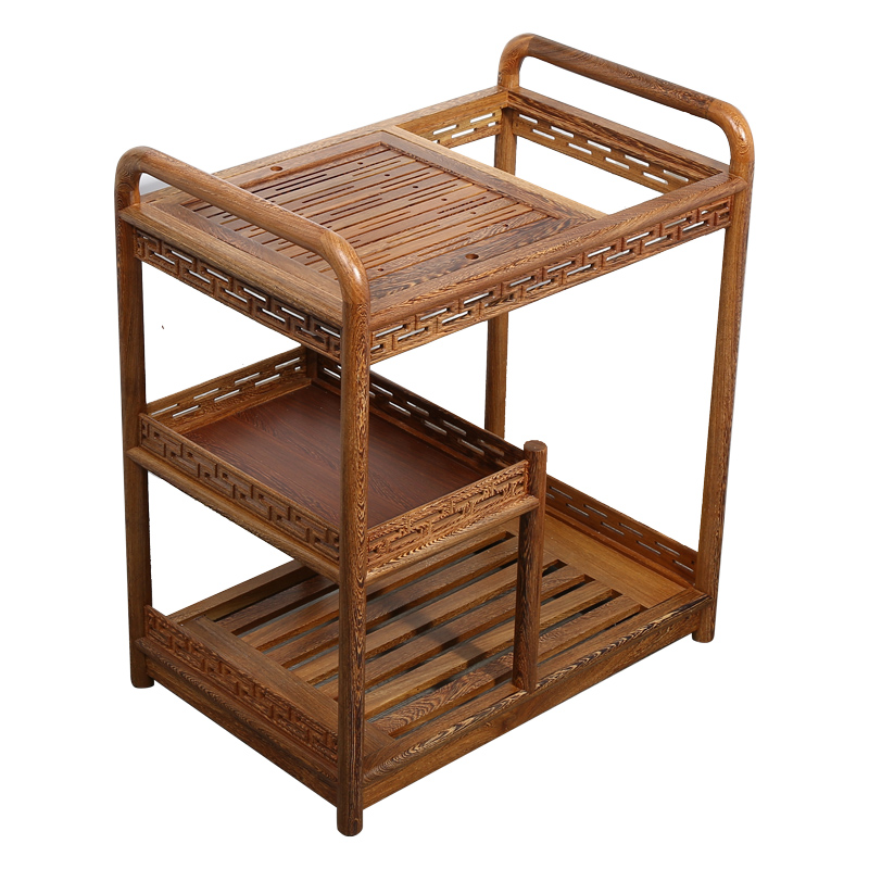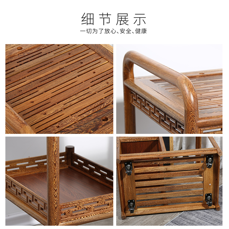 Chicken wings solid wood mobile tea cart Household Kung Fu tea set Simple Chinese living room with wheels automatic table side cabinet