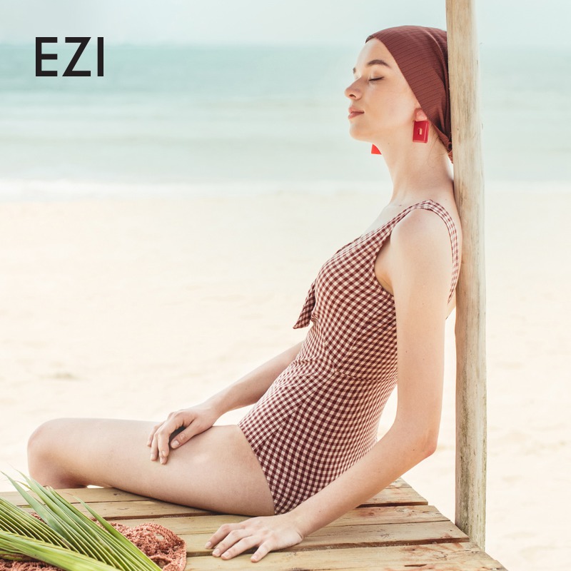 Yizi new swimsuit women's sweet ins one-piece triangle swimsuit conservative thin halter seaside holiday swimsuit