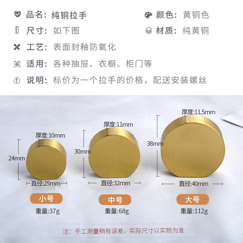 New Chinese-style pure copper handle cabinet door single-hole wine overall cabinet cabinet brass handle golden Nordic modern minimalist full copper