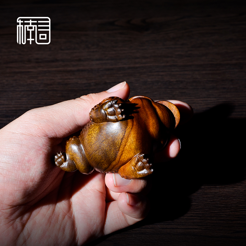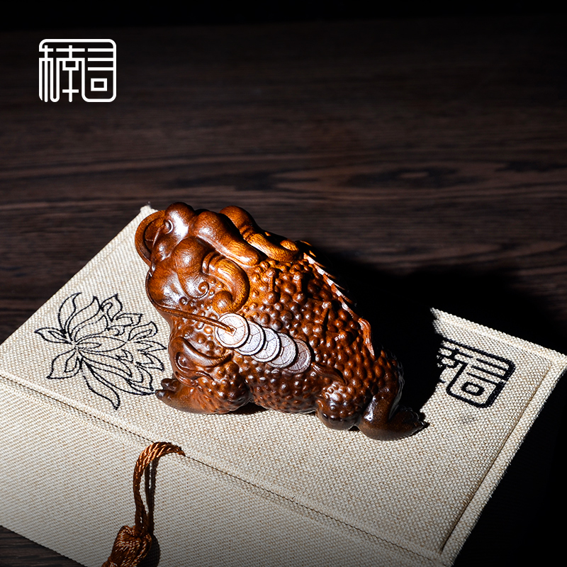 Nanxun Jinsi Nanmu three-legged golden toad handle piece ebony ornament gloomy wood play piece carving home accessories