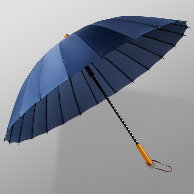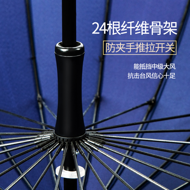 Wind-resistant 24 bone long handle umbrella male large double reinforced wooden handle sunny umbrella student straight rod business umbrella female custom