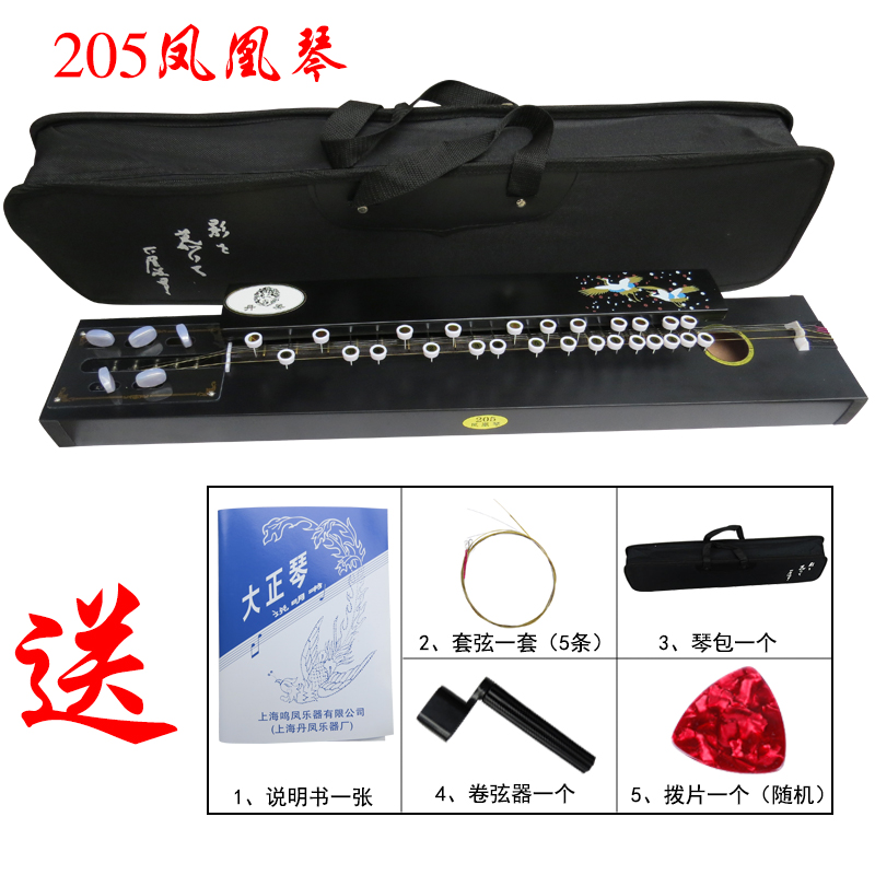 Danfeng Dazheng Happy Qin Peaceful Victory Qin Old-fashioned nostalgic plucked instrument Type 205 five-string phoenix qin