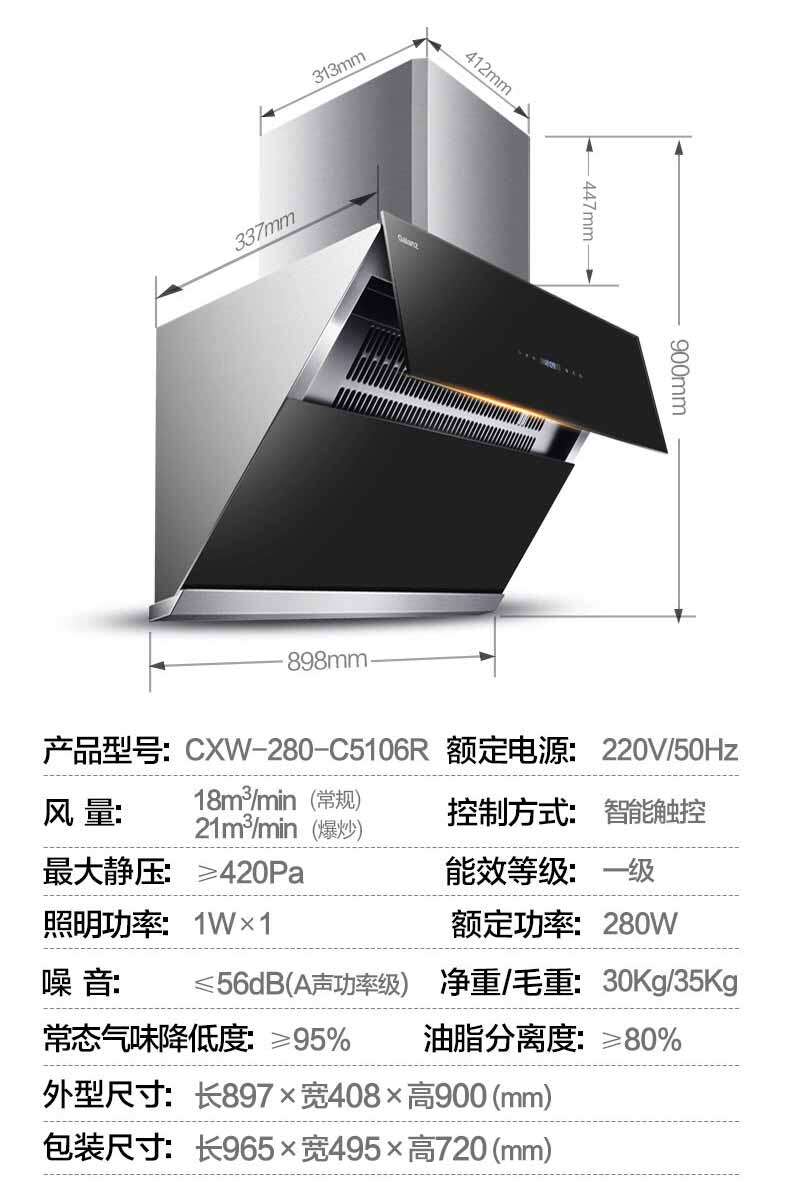 Galanz side suction range hood automatic cleaning household kitchen high suction wall-mounted 5106R