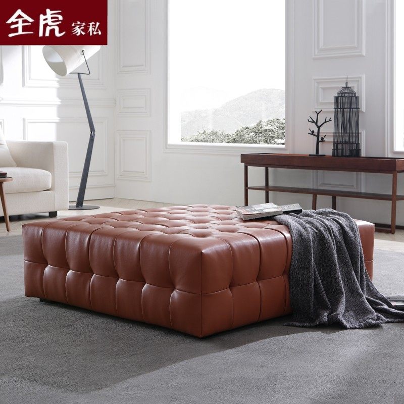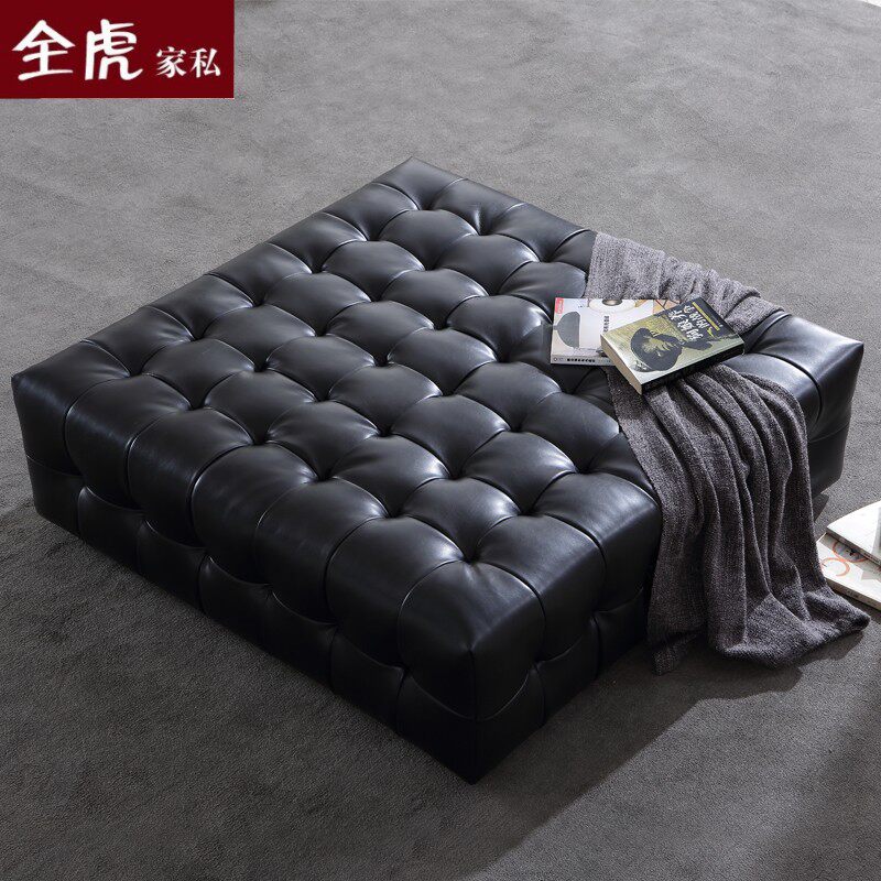 Brief Clothing Shop Sofa Bench Black Genuine Leather Mound Square Stool Changing Shoes Stool Cloister room Stool Living-room Table stool