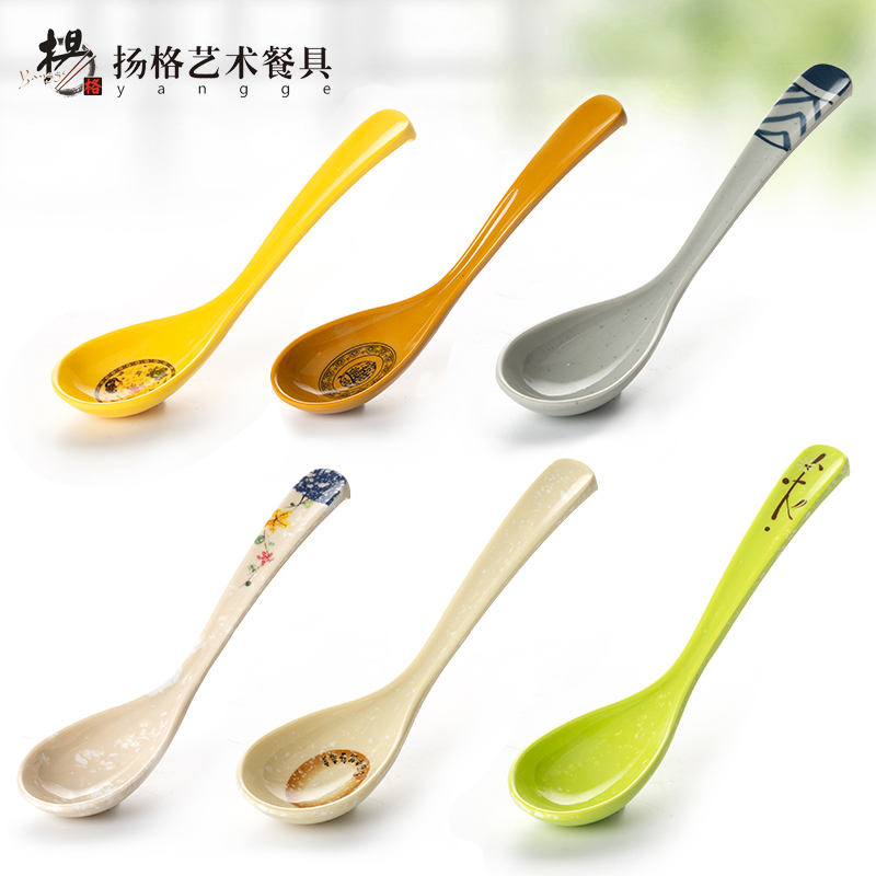 Yange imitation porcelain spoon hotel tableware soup spoon spoon short handle porridge spoon plastic white spoon Japanese noodle bowl spoon spoon