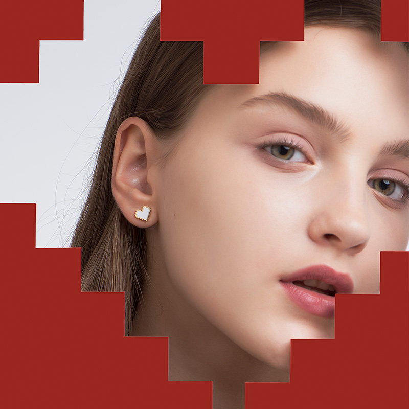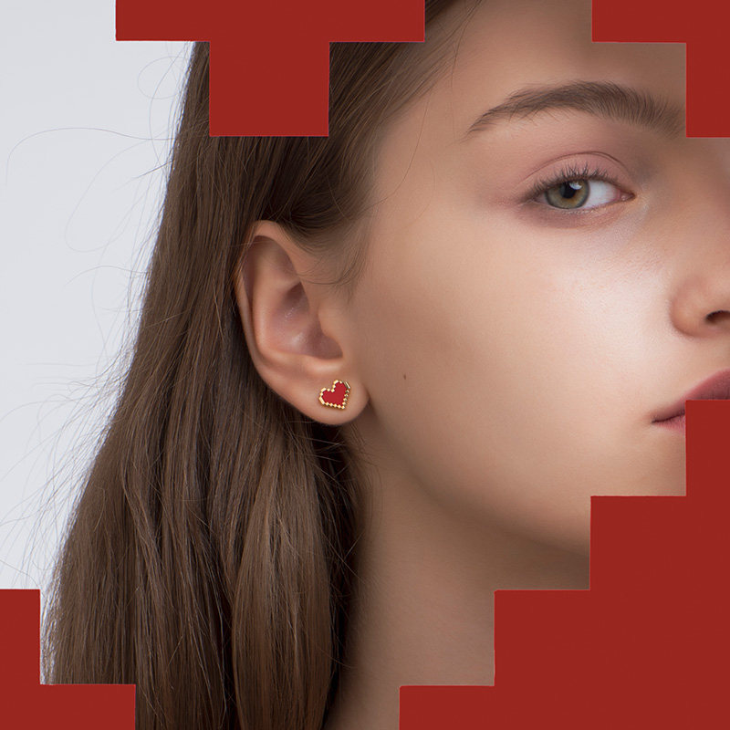 HEFANG He Fang jewelry confession kgold earrings 18K gold girl heart-shaped earrings earrings