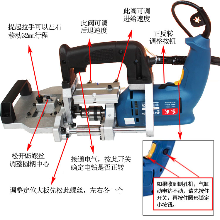 Pneumatic lateral hole machine horizontal drilling plate type furniture manual inclined hole machine horizontal drilling wood tenon puncher pneumatic lateral hole drilling