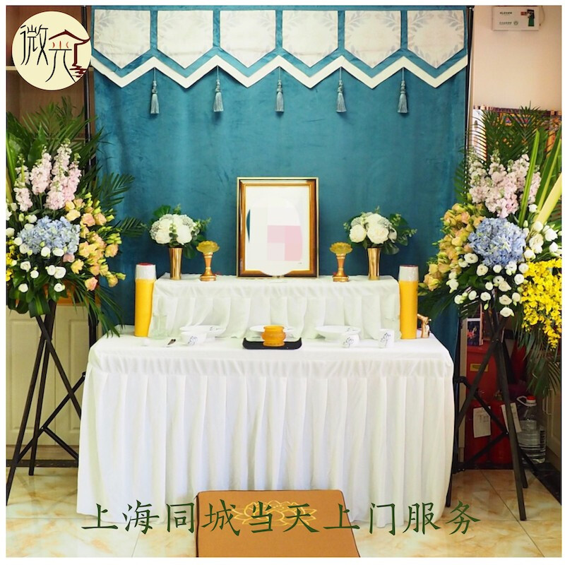 Low-light high-grade white mourning hall layout Shanghai city 1-hour door-to-door mourning hall supplies funeral one-stop