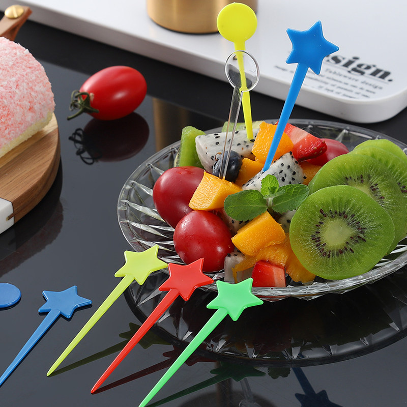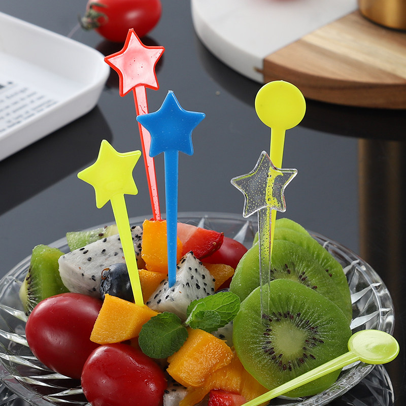 Color Independent Star Fruit Needle Disposable Fruit Fork Plastic Sign Fashion Creative Nail Fork Star Milk Cap Stick