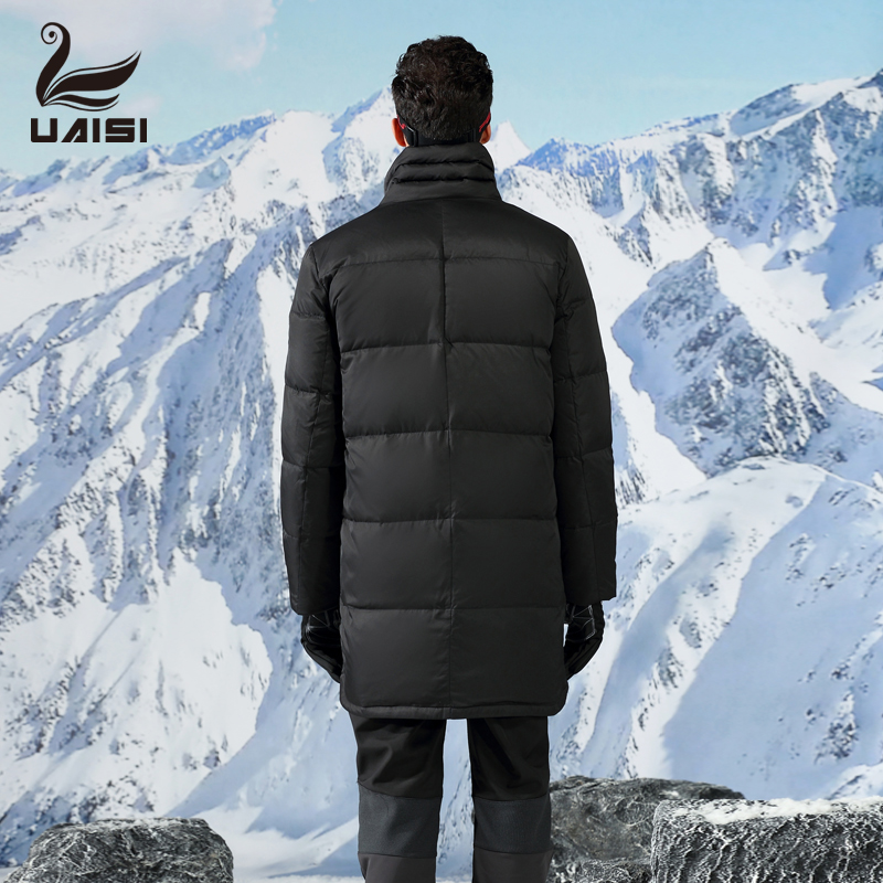 White goose down down jacket men's medium and long version thick large size winter new business leisure collar warm down jacket