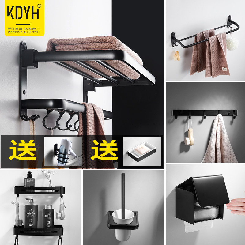 Free Punch Nordic Black Hair Towel Rack Makeup Room Bath Towel Rack Bathroom Shelve Bathroom Pendant Suit Towel Rod
