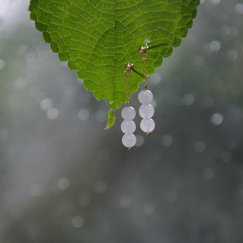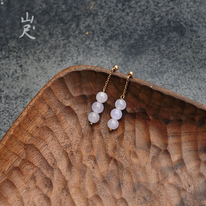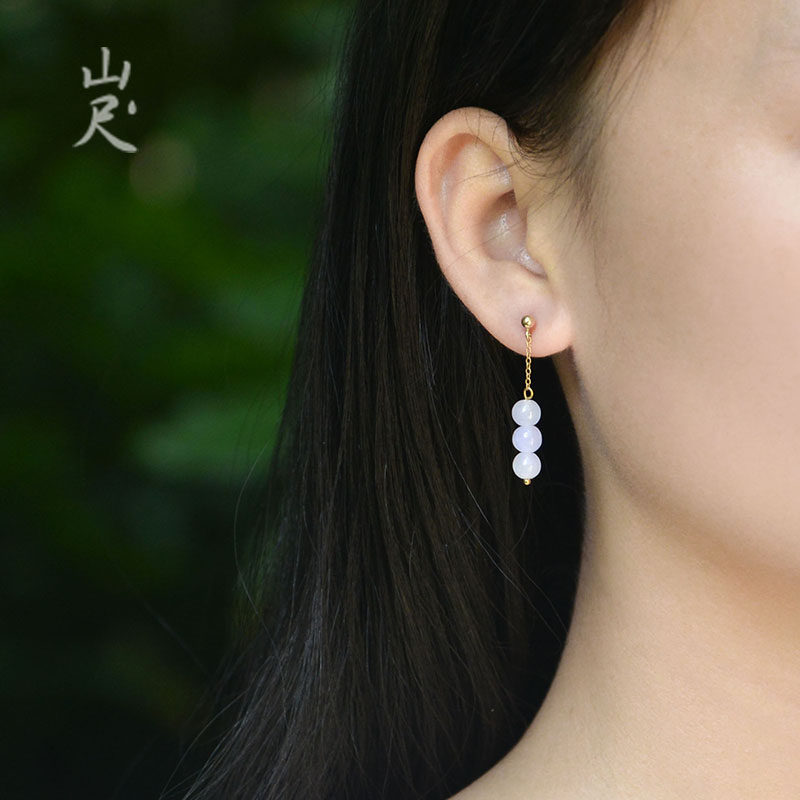 Mountain ruler) Bailu natural jadeite jade 18k gold long version earrings jade ear needle temperament earrings fairy ear chain