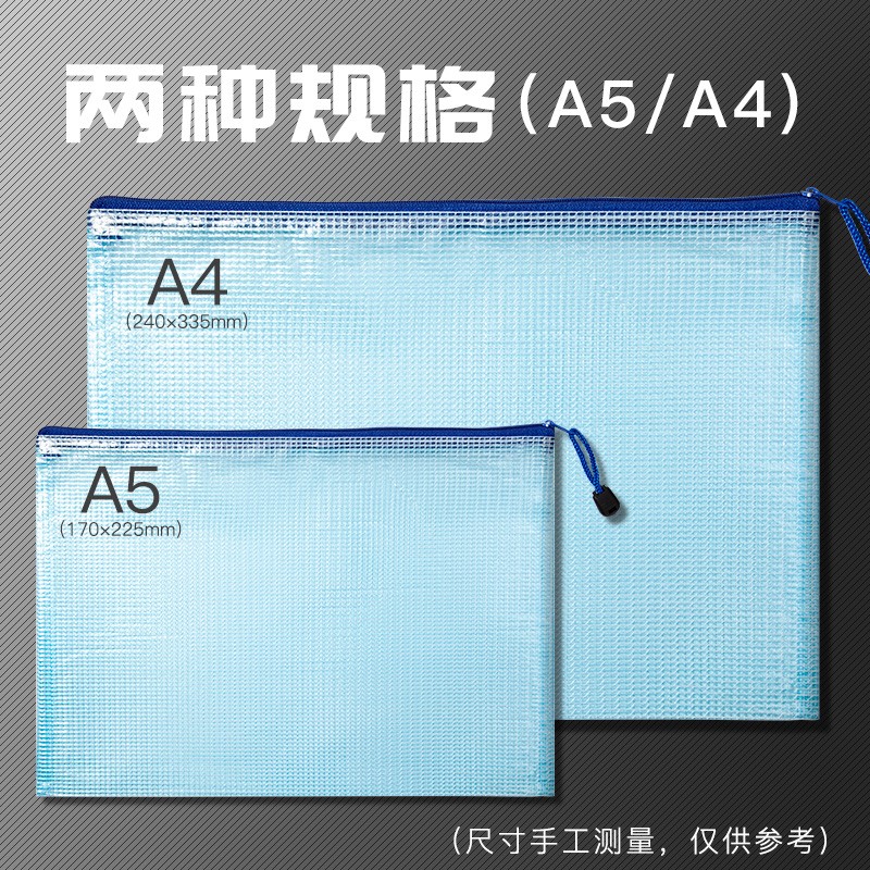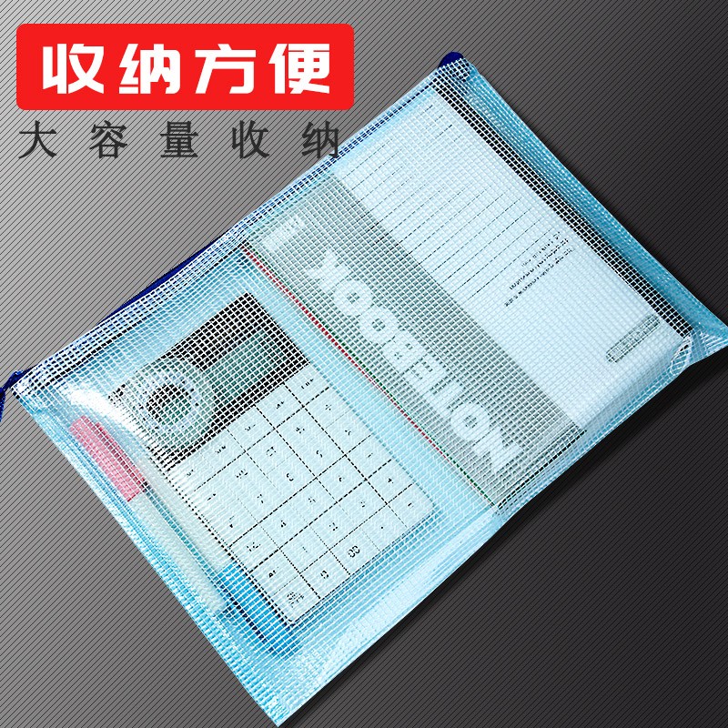 Thickened File Bag Transparent Mesh Pull Chain Bag Large Capacity A4 A5 Exam Paper Cashier Bag Student Stationery Archive Bag