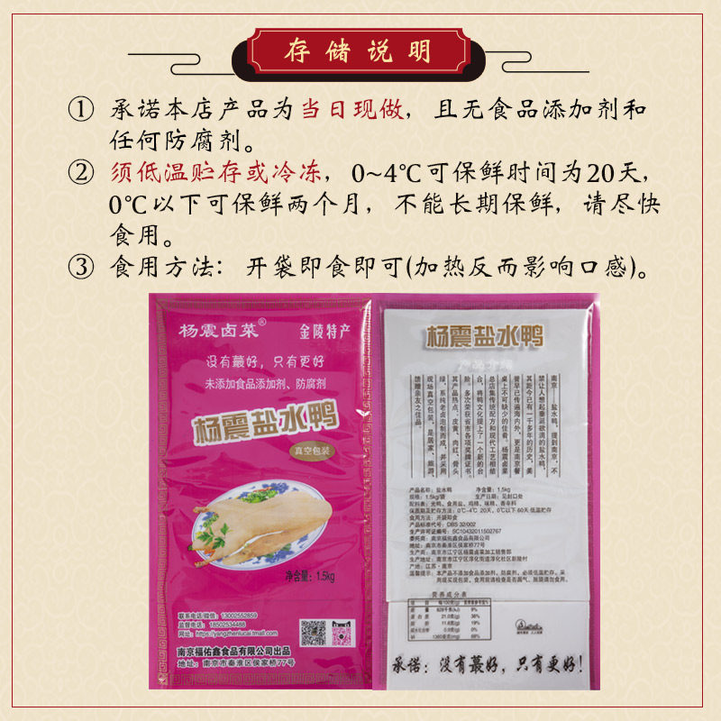 Yang Zhen Braised Nanjing salted duck Authentic specialty snack Water Ximen salted duck 3 pounds*1 official flagship store