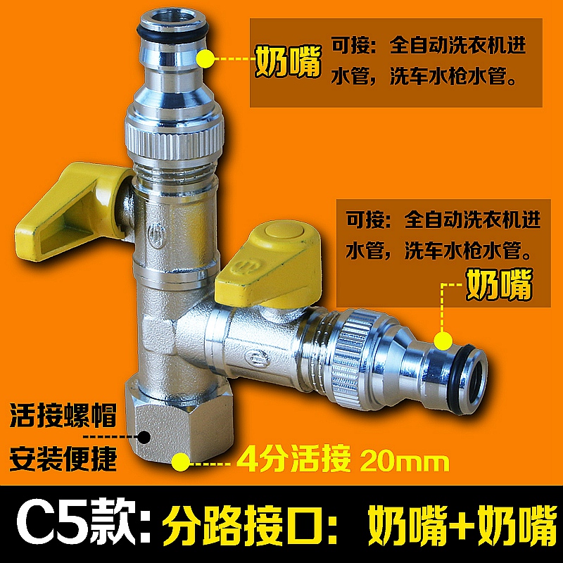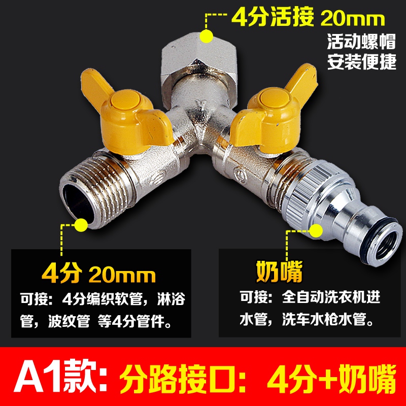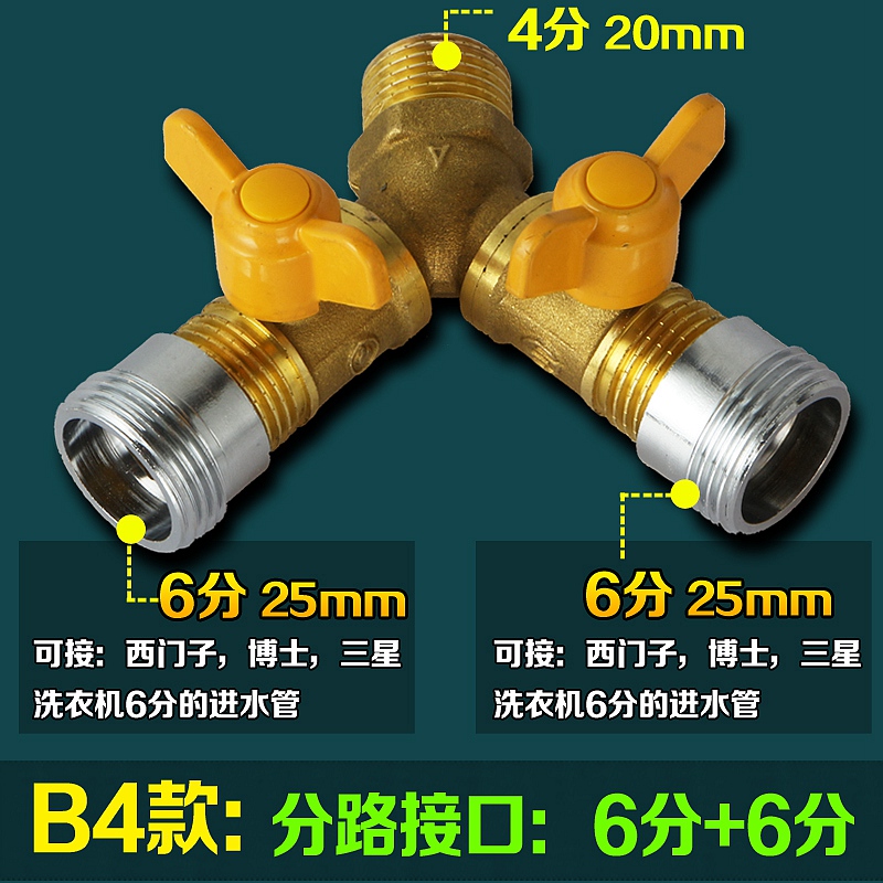 One point two with copper valve switch three-way water pipe diverter washing machine connector valve faucet connector