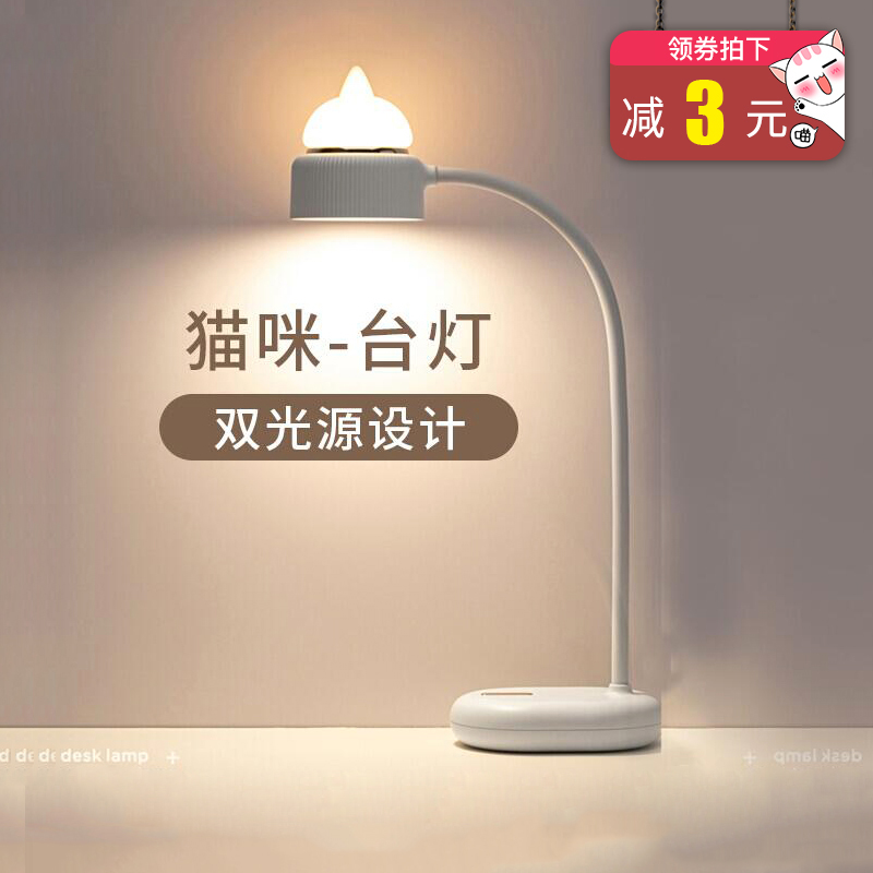 Kitty Creativity LED Small Table Lamp USB Rechargeable Eye Light Headboard Reading Cute Cartoon Desk Light Eye Care College Student Dorm Room Learning Bedroom Small Night Light Send Children Girls Day Gifts