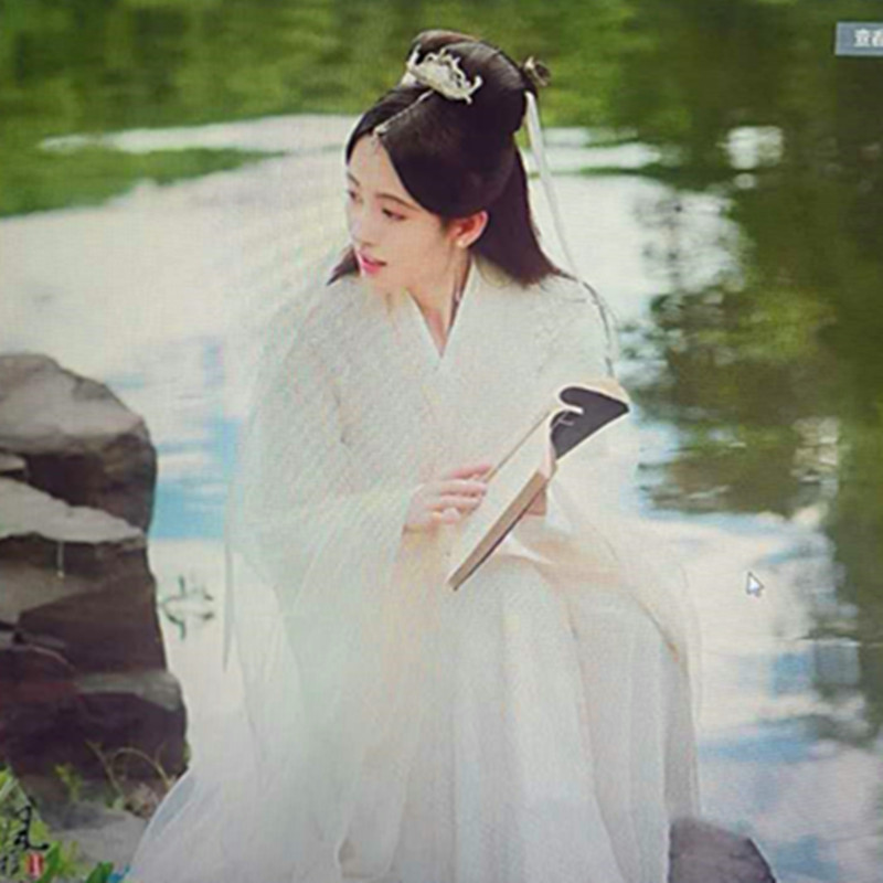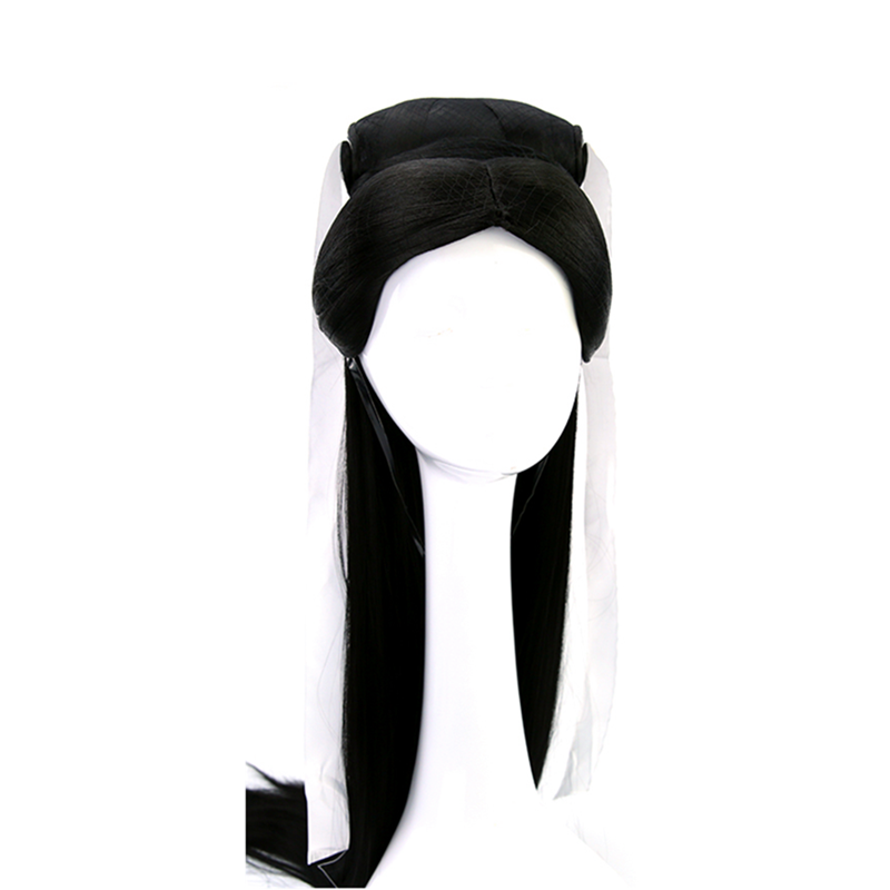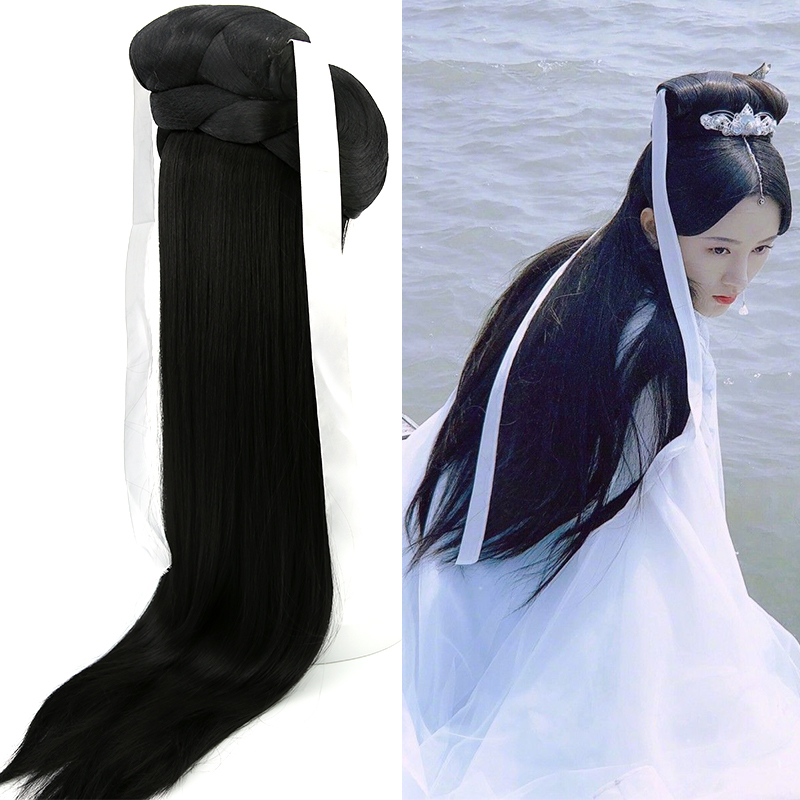 Ancient wind Han clothes wig new high temperature silk long straight hair cover breathable natural white lady bow Qian Yi Fashion female headgear
