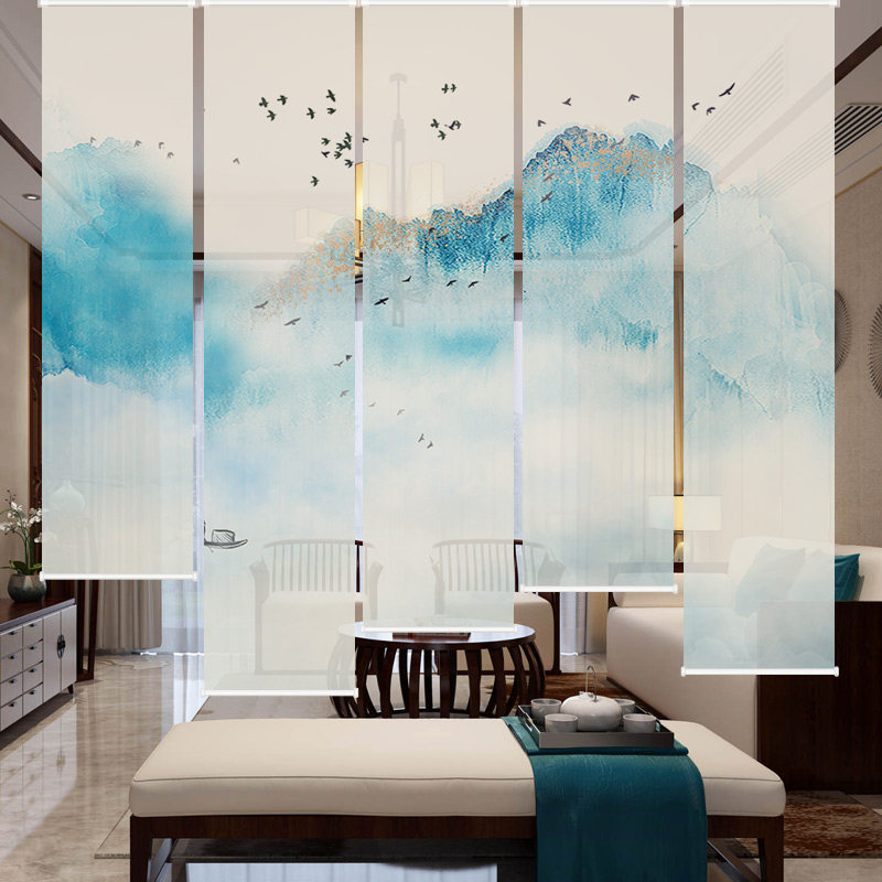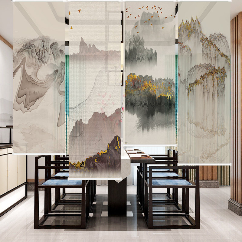 Hengki New Chinese Style Screen Through View Partition Curtain-closing Curtain Hotel Living-room Lifting Labead Curtain shutters shutters-Taobao