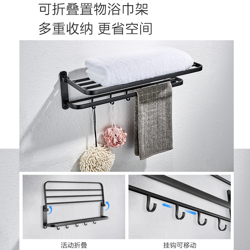 Jacked with 7 pieces of elegant black style 6 pieces of elegant black style 5 pieces of elegant black style 4 pieces Folding Bath Towels Rack Double-Rod towels Shelf Triangular Basket Double With Paper Towels Box Toilet brush holder Yahie 7 pieces of spray gun shower