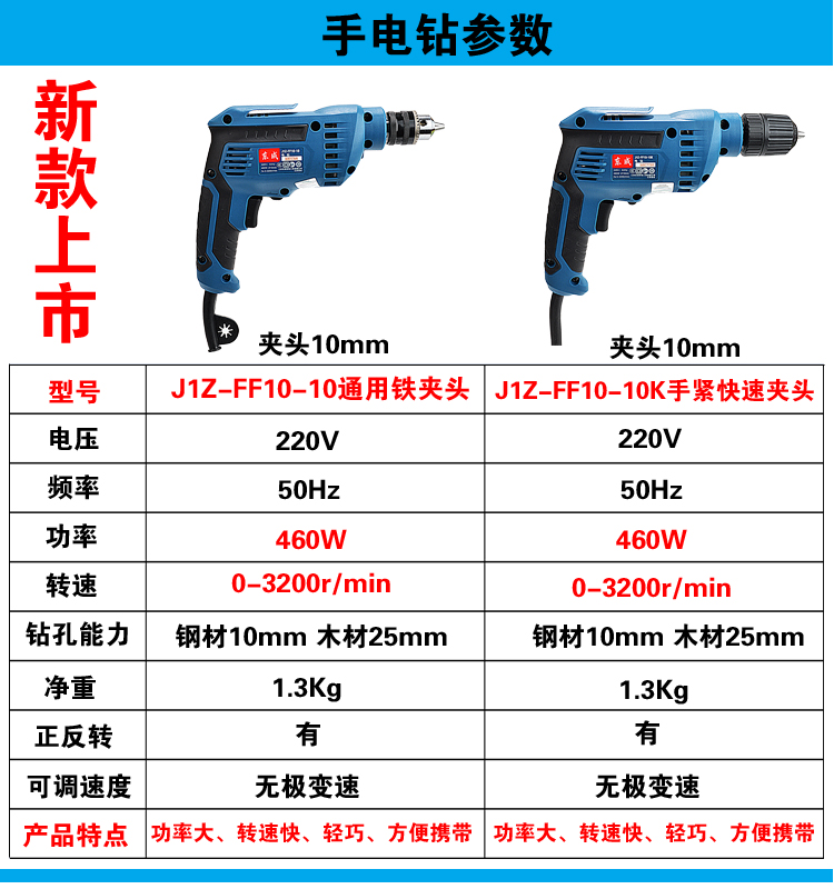 DONGCHENG FF10-10 (General iron chuck)Dongcheng FF10-10K (Fast chuck)