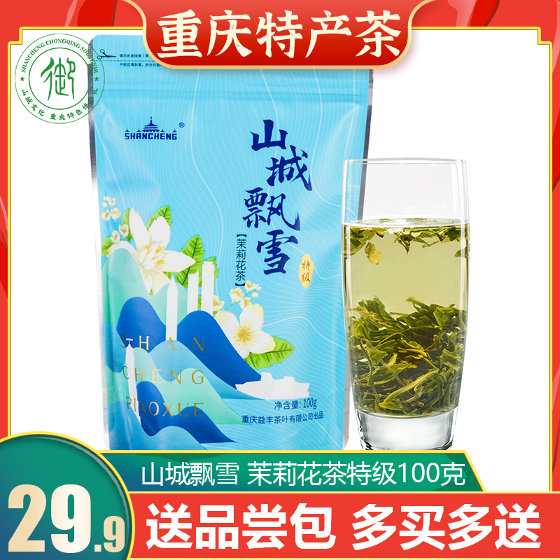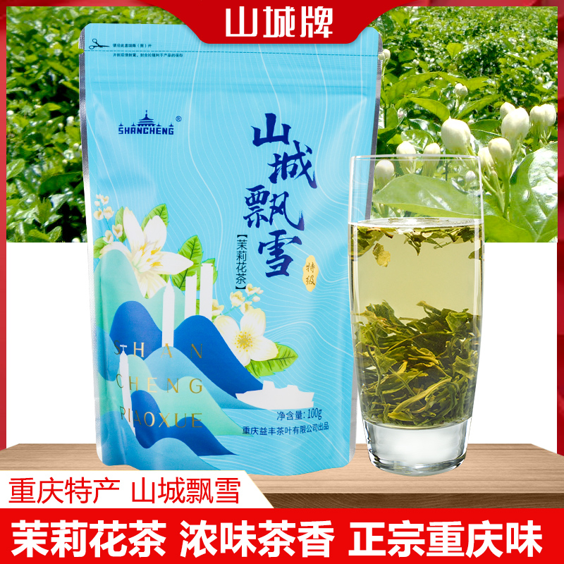 Mountain City Floating Snowy Jasmine Tea 100g Chongqing Teas Flowers Tea New Tea Intense Aroma Type Special Stage Jasmine Tea Leaves