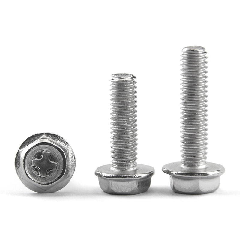 304 stainless steel outer hexagonal cross flange with cushion screw flange face non-slip with cushion cross screw M4M5M6