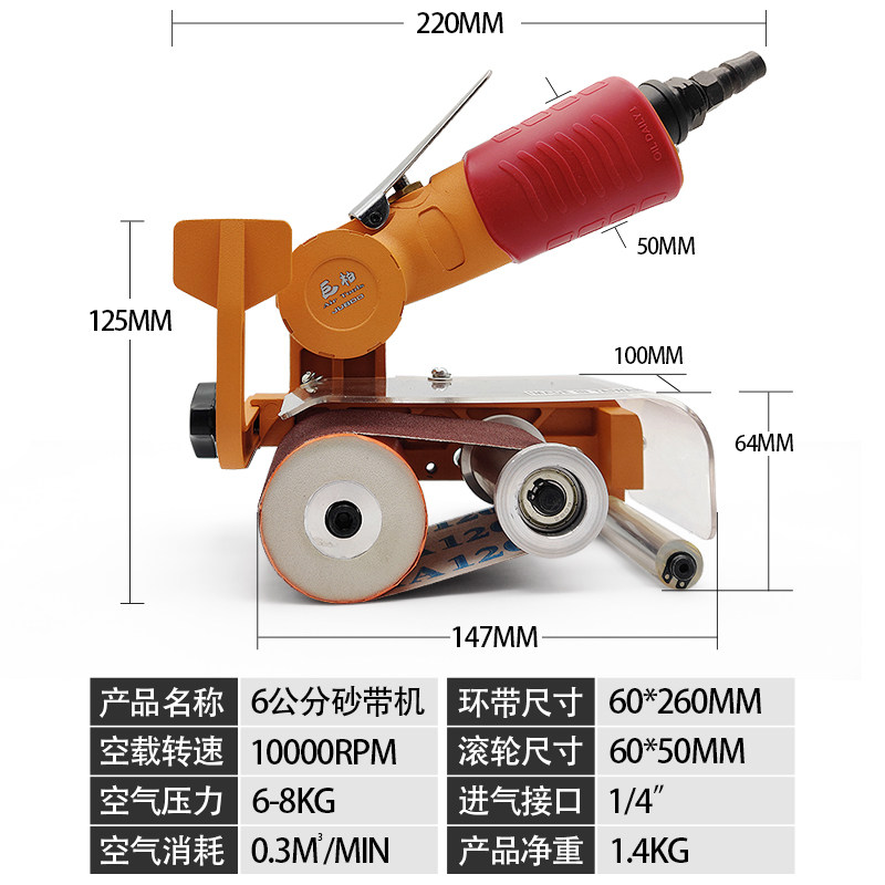 6 cm pneumatically powered sand belt machine