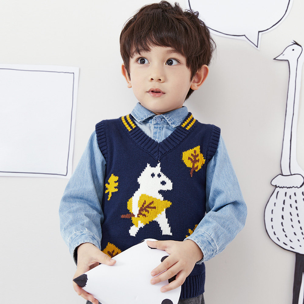 Rabbi Tree Children's Clothing Baby Knit Waistcoat Spring Autumn Clothing Children Kan Shoulder Vest Blouses New Boy Foreign Pie Fur Coats