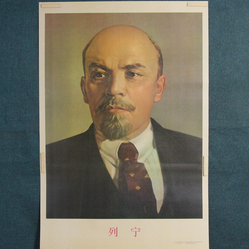 Red propaganda poster chairman 76 years standard portrait vintage old photo photo five great man Mann Les Mao
