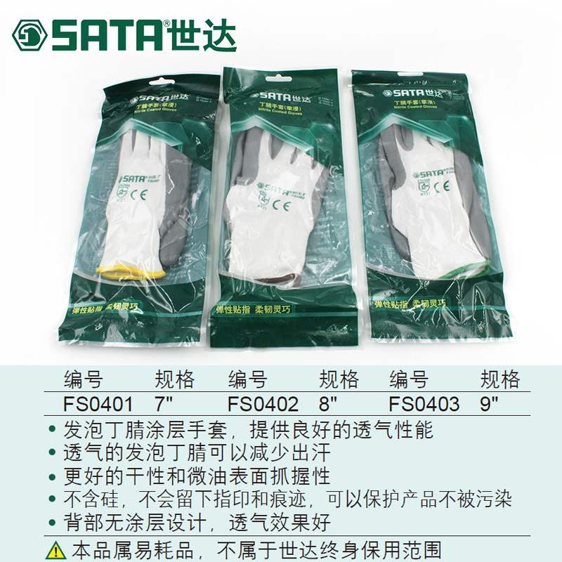 FS040 Nitrile Gloves (palm soaked) 7FS0402 Nitrile Gloves (palm soaked) 8FS0403 Nitrile Gloves (palm soaked) 9