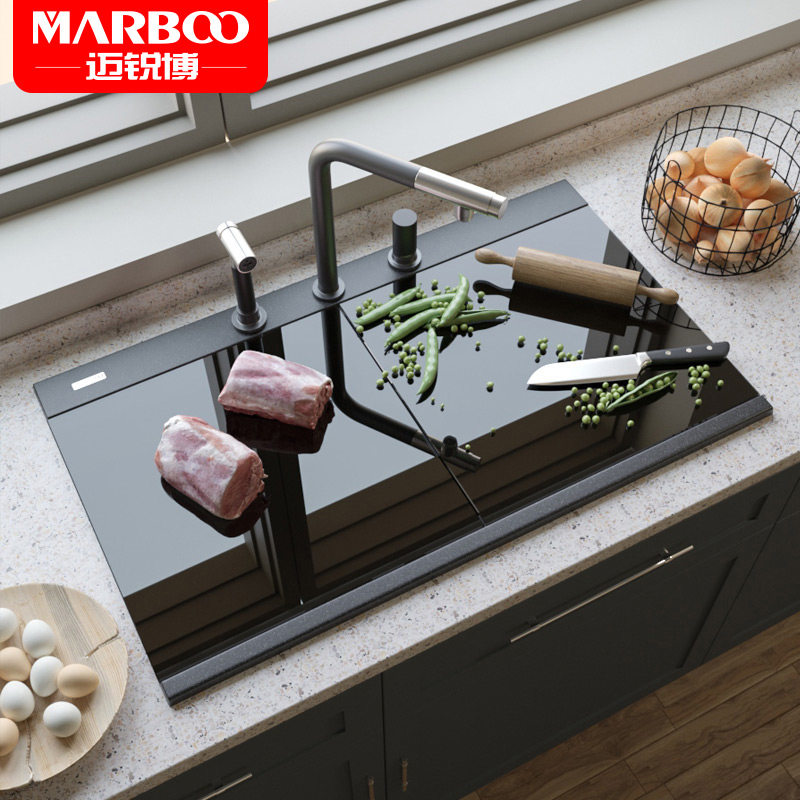 German Meru quartz quartz tank invisible large double sink wash basin hidden dishwasher pool cover tank 968