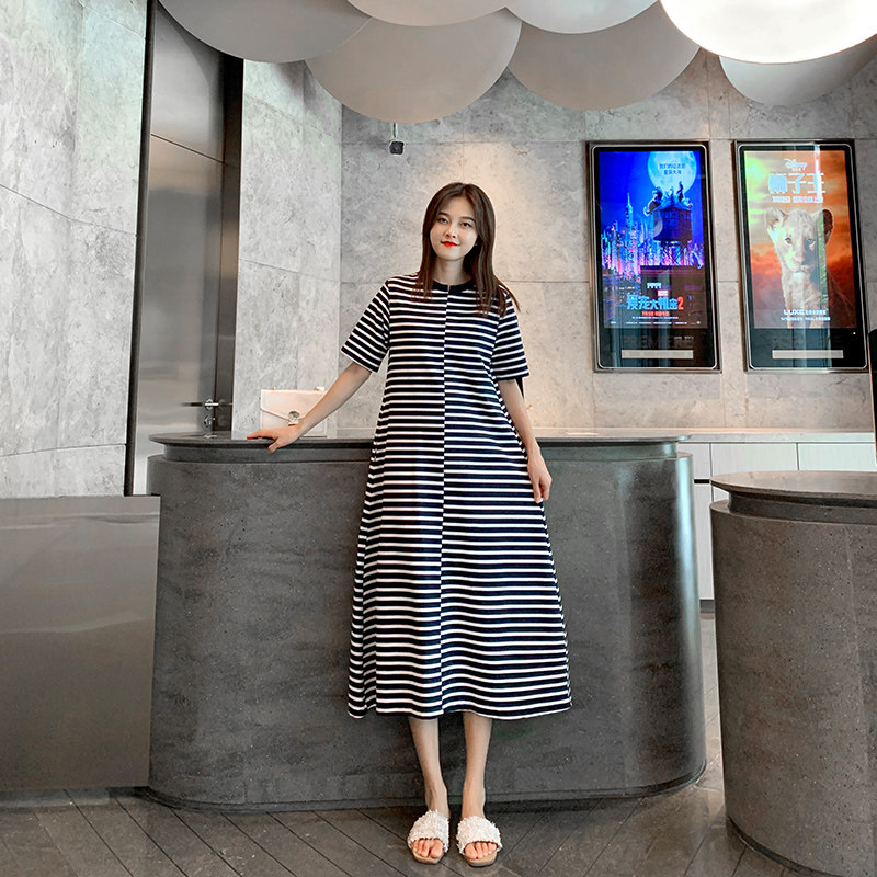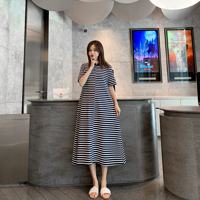 Gestational Maternity dress 2021 Summer loose large size Fashion striped pregnant woman covered with no spicy mother long dress
