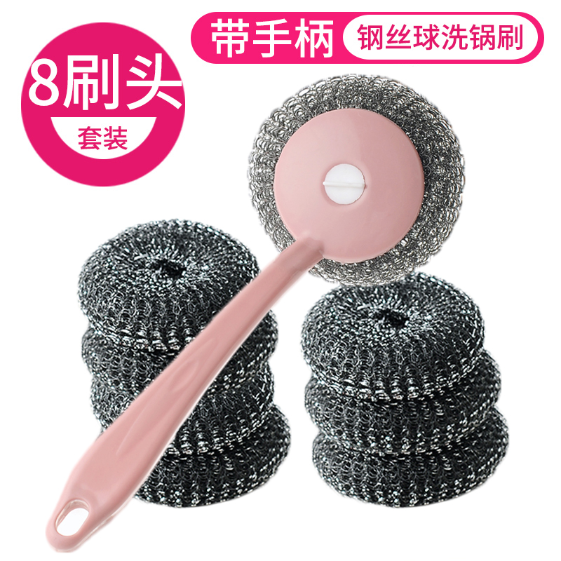 Kitchen with handle washing pot brush stainless steel cleaning ball cleaning brush to remove oil brush Household long handle wire ball brush