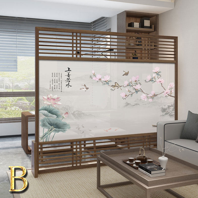 New Chinese solid wood office screen partition living room Xuanguan modern brief hollowed-out mobile partition wall seat screen