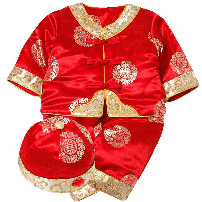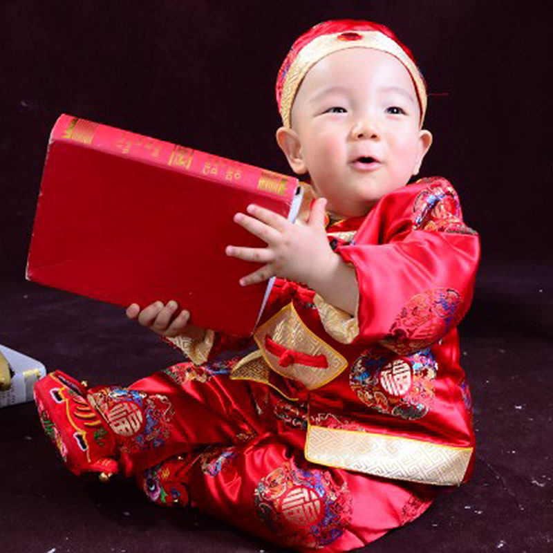 Carnation's artisanal children Tang suit cotton clothes suit men and women grabbing weekly birthday cotton padded jacket for winter thickened baby New Year's suit