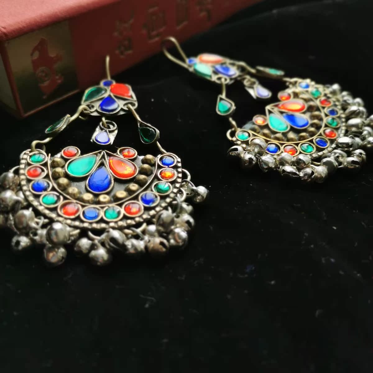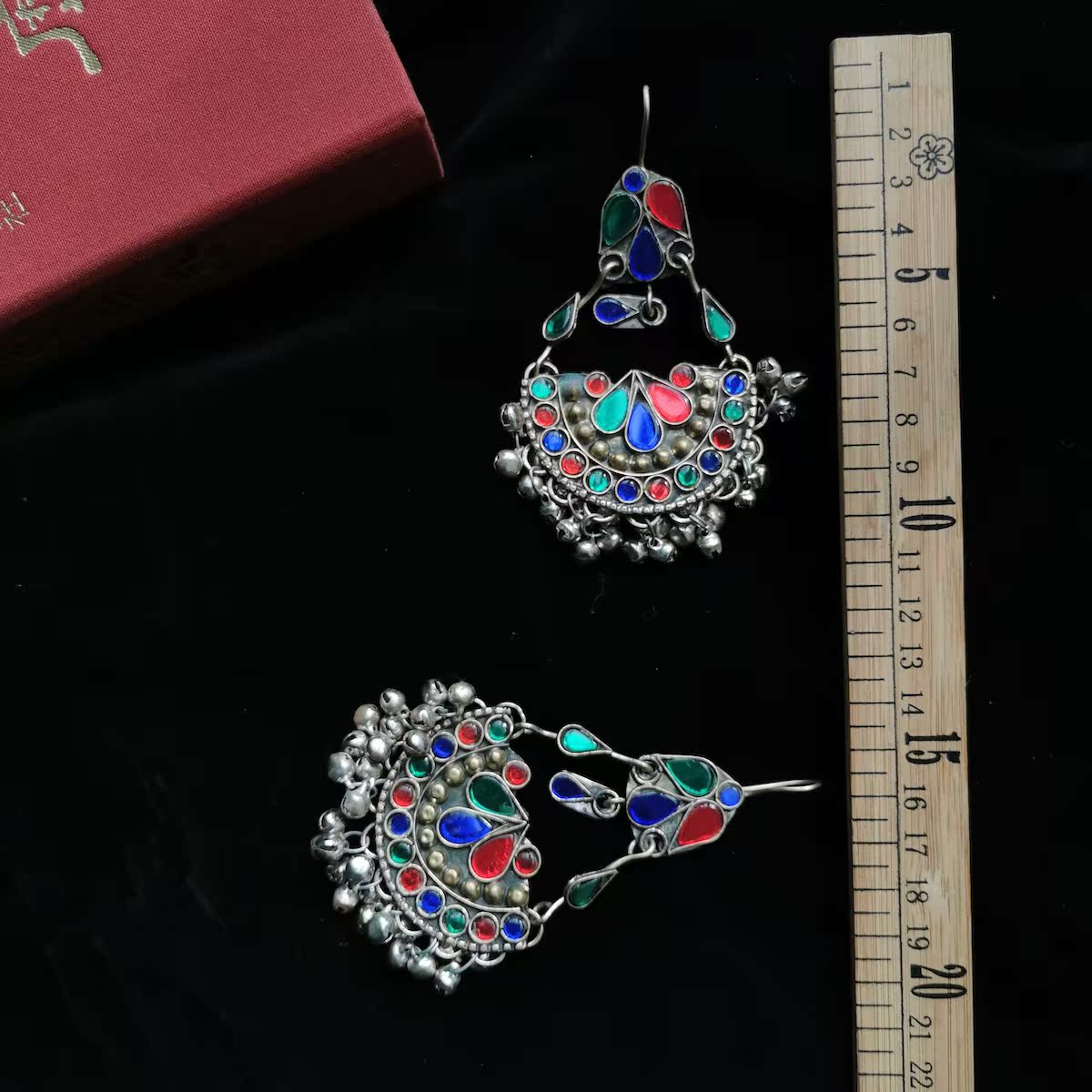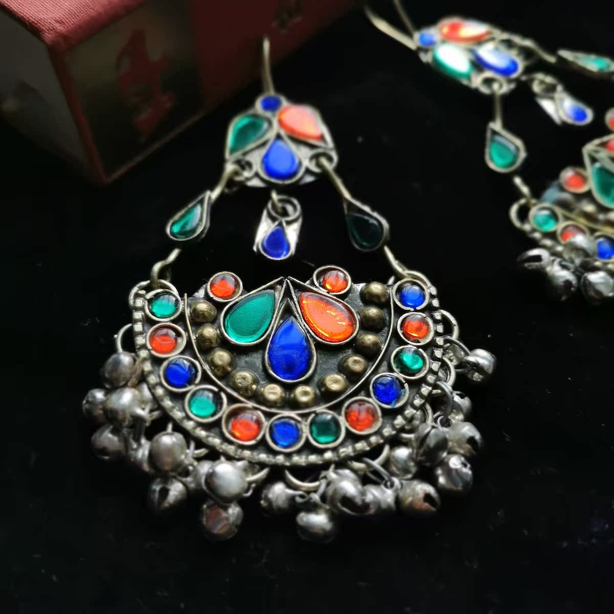 Tribal Light Spot Import ATS American Tribal Wind Belly Leather Dance Earrings Afghanistan Kuchi Ethnic Style