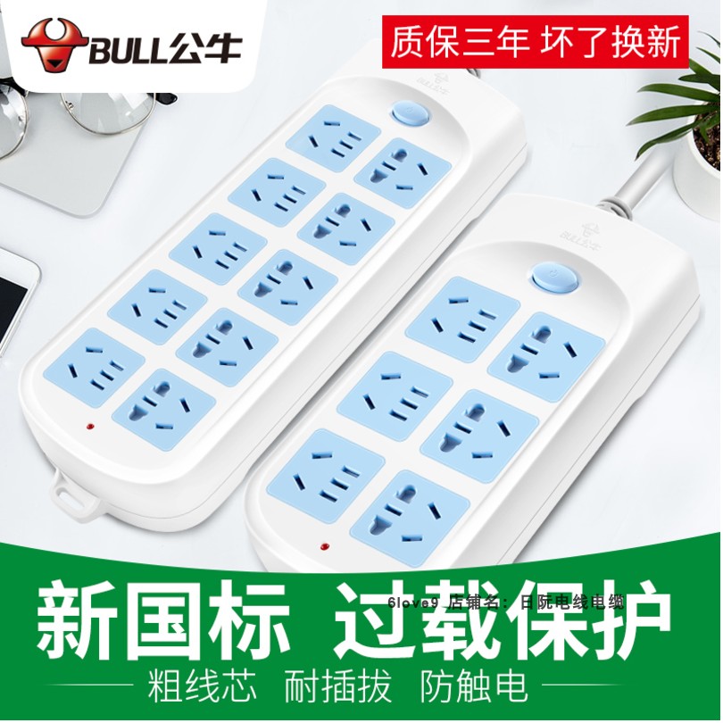 Bull socket multifunctional household plug board long overload protection creative 3 5 10 m 10 m 10 hole