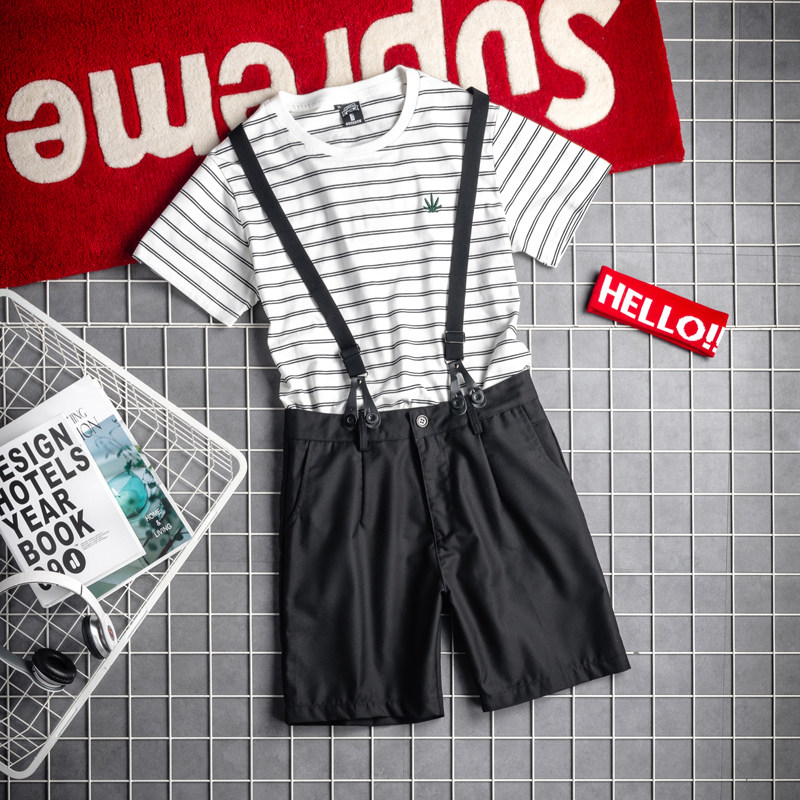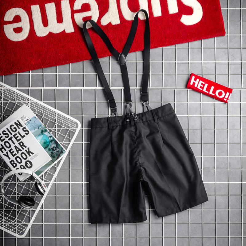 Men's shorts 2023 new five-point pants Korean version of the trend loose suit strap shorts boys suspenders pants