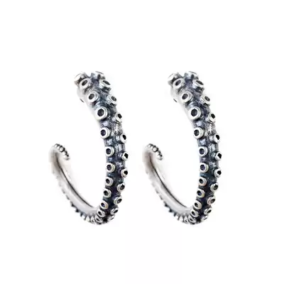 Octopus shark teeth ear needle ear clip 925 sterling silver diver dark personality punk jewelry ocean wind