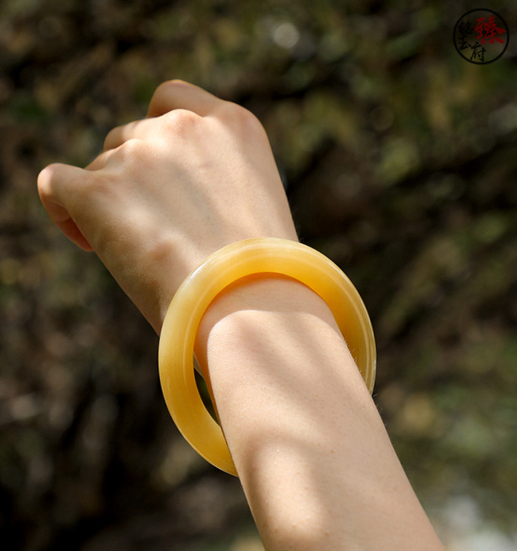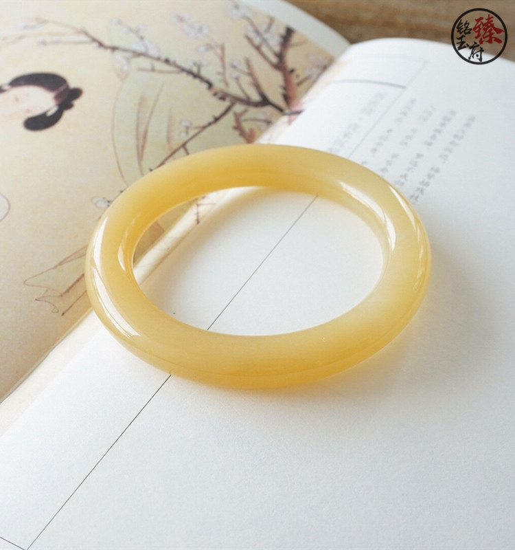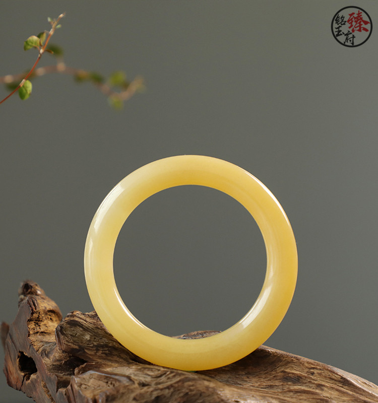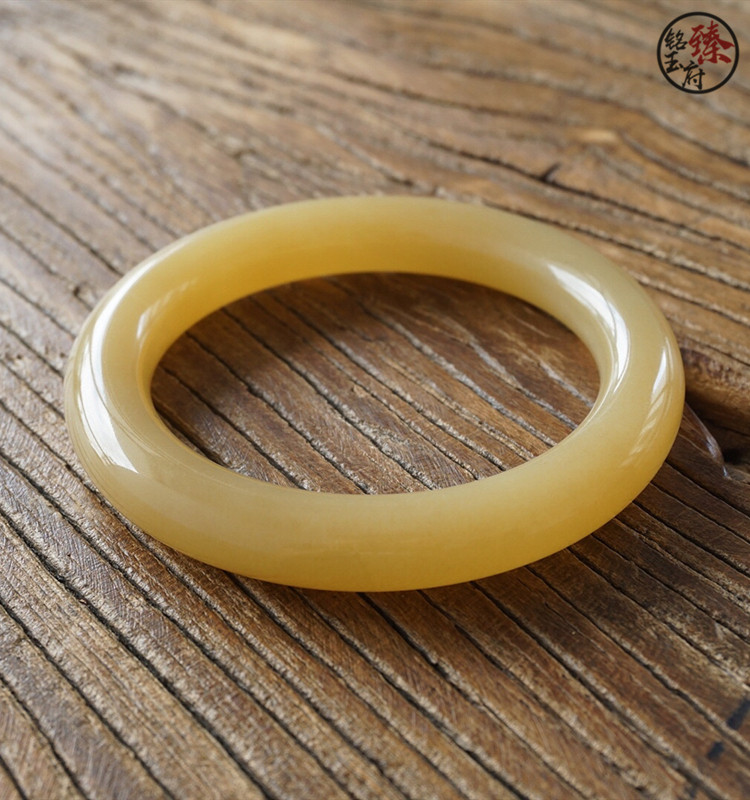"Mingzhen Yufu" Formal Dress Hetian Jade Sugar Bracelet Bison Ditch Honey Water Women's Candy Jade Round Strip Jade Bracelet